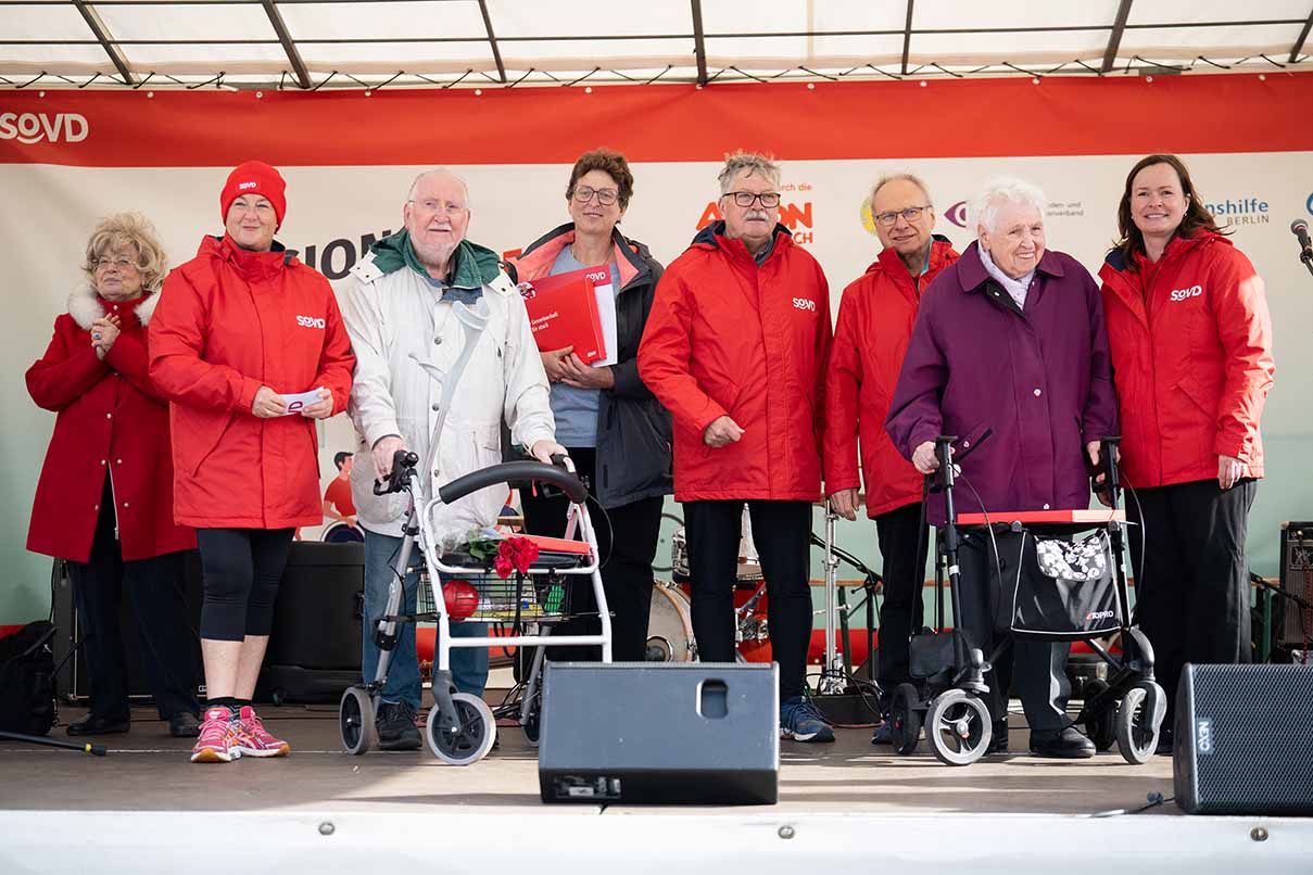 Neben der Laufstrecke bot sich den Besucher*innen ein buntes Programm mit Essen und Trinken sowie vielen Informationsständen sozialer Organisationen, darunter auch Zelte des SoVD sowie des BBW Stendal und des Nordic CAMPUS. Vor allem Jüngere konnten ihre Geschicklichkeit beim Hindernisparcours beweisen oder beim Stand von Hertha BSC ihre Schusskraft messen lassen. Auf der Bühne stellten unterdessen einige Aussteller – etwa die SOS-Kinderdörfer oder der Muva-Bus der BVG – ihre Angebote ausführlicher vor.
